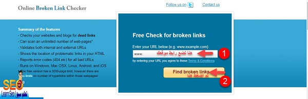 لذلك وجدت لكم موقع رائع يمكنك من تفحص جميع الروابط الموجودة على موقعك او مدونتك ومن خلال نتائج الفحص سيتم معرفة جميع الروابط المعطلة و المحذوفة بموقعك أو مدونتك و كيفية التعامل معها سواء بالحذف أو الإصلاح.